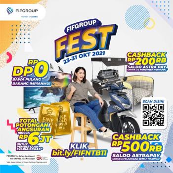MATARAM, (JT) - PT Federal International Finance (FIFGROUP) kembali hadirkan salah satu promo, yakni FIFGroup Fest warga Mataram. Promo ini dapat dinikmati pada 23-31 Oktober 2021. Tentunya ini menjadi kesempatan emas yang sangat sayang dilewatkan bagi warga Mataram yang ingin mewujudkan impiannya mulai dari sepeda motor Honda, produk elektronik dan gadget, perabotan rumah tangga, hingga pembiayaan multiguna dan syariah.