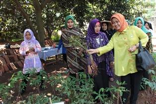 CURUG - Wakil Ketua TP PKK Kabupaten Tangerang Rismawati Rudy Maesyal meninjau kebun PKK Desa Kadu Jaya, Kecamatan Curug, Selasa (20/3/2018). Dalam kesempatan Bina wilayah wilayah ini, Rismawati mengajak kader PKK memanen kacang.