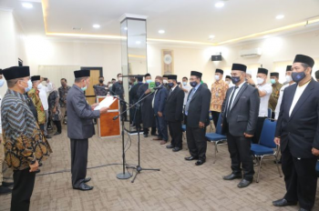 Walikota Serang H Syafrudin saat mengambil sumpah jabatan pengurus Baznas periode 2022-2026.