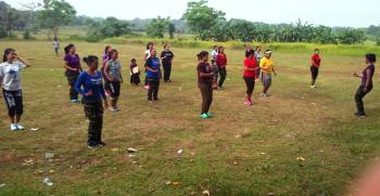 Meskipun dengan alat seadanya, puluhan ibu-ibu ini terlihat antusias diiringi lagu-lagu yang enerjik sebagai pembakar semangat mengikuti setiap kombinasi gerakkan yang dipandu secara bergantian oleh instruktur. Acara senam ini rutin digelar dalam seminggu sekali.