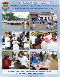 TANGERANG, - Sekretaris Daerah (Sekda) Moch Maesyal Rasyid membuka rangkaian acara dalam rangka Hari Kesehatan Nasional ke-59, HUT ke-52 Korpri, HUT ke-78 PGRI dan Hari Guru, yang dipusatkan di GSG Puspemkab Tangerang, Kamis, (7/12/2023). Dalam sambutannya Sekda Moch Maesyal Rasyid mengungkapkan rangkaian ... [selengkapnya]