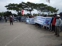 Ratusan Buruh Bongkar Muat Pelabuhan Marunda Gelar Aksi Unjuk Rasa Tuntut Pembubaran Koperasi TKBM