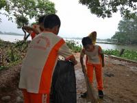 Ratusan Anak SD Bersih - bersih Situ Cipondoh