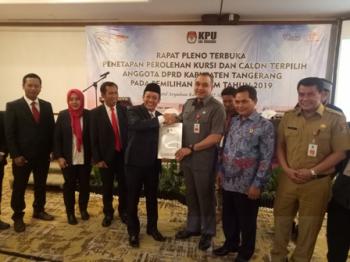 KELAPA DUA - Komisi Pemilihan Umum (KPU) Kabupaten Tangerang menetapkan 50 kursi DPRD hasil Pemilu 2019, Senin (12/8/2019). Dari jumlah tersebut terdapat 50 persen lebih muka lama yang terpilih kembali. PDIP memperoleh kursi terbanyak yakni 8 kursi.