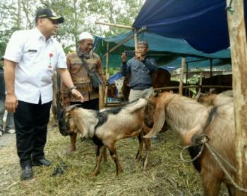 KELAPA DUA - Untuk memastikan kelayakan, keamanan serta kesehatan hewan kurban Bupati Tangerang A. Zaki Iskandar meninjau langsung lapak penjual hewan kurban di beberapa lokasi yang tersebar di Kecamatan Kelapa Dua, Rabu, (7/8/2019).