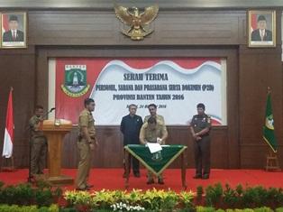 SERANG - Bupati Tangerang A. Zaki Iskandar yang diwakili oleh Asisten Daerah Bidang Pemerintahan dan Kesejahteraan Rakyat Kabupaten Tangerang Arsyad Husein menghadiri penandatanganan Berita Acara Serah Terima (BAST) pengalihan personil, sarana dan prasarana serta dokumen P2D yang dilaksanakan di Pendopo Gubernur Banten, Serang, Senin (24/10/2016).