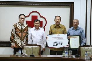 Presiden Direktur PT Astra International Tbk Prijono Sugiarto menyerahkan langsung donasi secara simbolis tersebut kepada Pelaksana Harian (Plh) Ketua Umum PMI Ginandjar Kartasasmita yang disaksikan Ketua Umum PMI Jusuf Kalla.