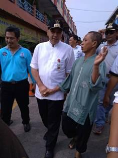 TIGARAKSA - Bupati Tangerang Ahmad Zaki Iskandar mengajak warga untuk belanja di pasar tradisional. Hal tersebut dikatakannya saat membuka gerebek pasar di pasar Kelapa Dua, Jumat 21/4 /2017. Menurut Zaki, saat ini warga enggan berbelanja ke pasar tradisional karena lebih memilih ke pasar modern, swalayan dan Mall.