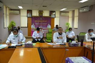 Bupati Zaki sendiri mengikuti vidcon di Lantai 5 Gedung Setda (Sekretariat Gugus Tugas Covid 19) dan didampingi oleh para Asisten Daerah, Kadinkes, Kadiskominfo, dan Kepala BPBD Kabupaten Tangerang.