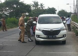 Di hari ke tiga pemberlakuan PSBB, Camat Sukadiri melibatkan Satuan Polisi Pamong Praja (Satpol PP) kembali turun ke jalan untuk memastikan masyarakat mematuhi pemberlakuan PSBB di ruas jalan pertigaan Kosambi, Sepatan-Mauk.