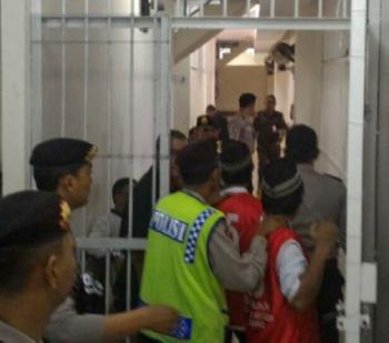 TANGERANG - Terdakwa kasus pembunuhan Eno Farihah menggunakan gagang cangkul yakni, Imam Hapriadi (24) yang divonis hukuman mati dibesuk oleh ayahandanya di Lapas Pemuda Tangerang pada Kamis (9/2/2017).