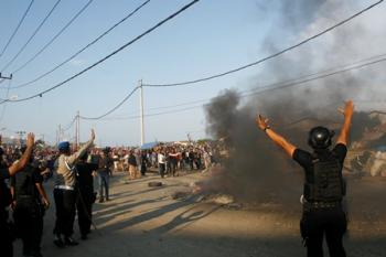KOSAMBI - Penyerahan Surat Peringatan (SP) II di eks lokalisasi Dadap, Kecamatan Kosambi, Kabupaten Tangerang, mendadak berubah jadi bentrokan. Selasa (10/5/2016) lalu, warga yang semula menerima penggusuran malah membuat barikade dan membakar ban di jalan untuk menghalau petugas.