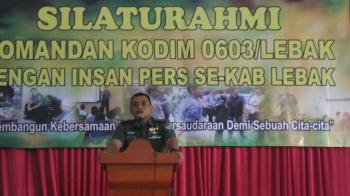 "Insan pers sebagai corong kami harapakan dapat bersinergi dengan pihak TNI untuk menyampaikan informasi kepada publik mengenai kinerja TNI. Apalagi, tahun 2017 ini kita berencana akan segara melaksanakan Program TMMD juga mengawal program penanaman jagung di Kecamatan Gunung kencana kemarin, perlu kiranya hal seperti itu untuk di publikasikan," kata Dandim saat menggelar silaturahmi Kodim 0603 Lebak dengan insan pers se-Kabupaten Lebak di Aulan Sunan Giri Makodim Lebak, Jum'at (10/3).