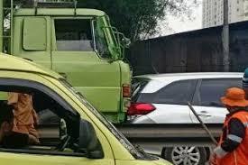 Saat melintas di Jalan Jenderal Sudirman, truk itu diduga hilang konsentrasi hingga menabrak truk bernopol B-9178-CU yang dikendarai Jamsuni (39).