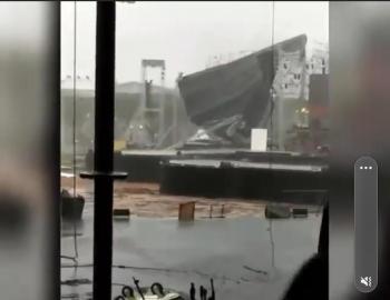 "Ngeri anginnya menakutkan. Atap tiketing di stasiun ambrol," ungkap Usman pengguna KRL di Stasiun Rawa Buntu, sore tadi.