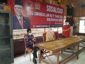 KELAPA DUA, (JT) - Anggota Komisi VI DPR RI asal Fraksi Partai Demokrasi Indonesia (PDI) Perjangan Ananta Wahana, sosilaisasikan Undang-Undang, Cipta Kerja, Senin (28/12/2020). Ananta kaliini fokus membahas tentang Usaha Mikro Kecil dan Menengah (UMKM).