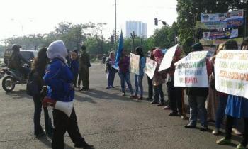 "Kami menuntut segera sahkan RUU penghapusan kekerasan seksual. Dan kami mengecam segala bentuk kekerasan seksual terhadap perempuan dan anak,” ujar Kokom.
