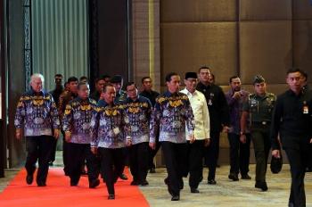 Dalam sambutannya, Presiden Joko Widodo (Jokowi) menyampaikan bahwa saat ini Indonesia semakin mendapat pengakuan dunia internasional terkait reformasi ekonomi yang dilakukan. Pertama kali dalam 20 tahun lalu, Indonesia mendapat peringkat layak investasi dari 3 lembaga internasional.