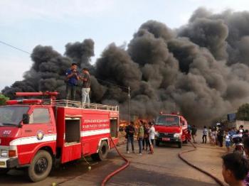 "Penyebabnya kami belum tahu pasti. Tiba-tiba ada kobaran api dari tumpukan ban bekas, lalu membesar hingga seperti ini," ujarnya kepada wartawan.