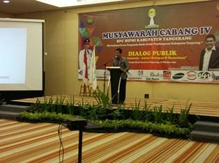 Dalam kesempatan tersebut, Bupati Tangerang yang diwakili oleh Kepala Bappeda Hery Heriyanto menyampaikan sambutannya pertemuan musyawarah daerah ini, merupakan salah satu kewajiban bagi organisasi, dalam mengevaluasi kembali program kerja organisasi yang telah berjalan maupun yang sedang berjalan. Disamping itu dapat memberi arti dan kesadaran bagi para anggotanya untuk lebih berperan secara aktif dalam ikut membangun perekonomian bangsa, khususnya didaerah Kabupaten Tangerang, dengan demikian BPC HIPMI Kabupaten Tangerang harus mampu mendesain program kerja dan keputusan yang dapat menjawab tantangan dan hambatan pembangunan, yang disesuaikan dengan kemampuan dan situasi, kondisi wilayah Kabupaten Tangerang yang sejalan dengan arah prioritas pembangunan daerah, diantaranya penanggulangan kemiskinan dan peningkatan kesempatan kerja.