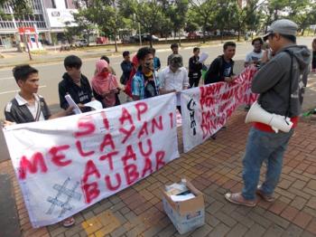 Sebanyak 30 mahasiswa HMI tersebut melakukan orasi damai didepan Polres Tangsel yang terletak di jalan Boulevard Binatro Jaya sektor IX, Pondok Aren. Sambil membentangkan spanduk 'siap melayani atau bubar'.