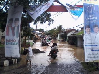 Genangan air terlihat di komplek Perumahan disekitaran terminal Mandala, Kecamatan Cibadak, Komplek Pendidikan, Kecamatan Rangkasbitung dan Kampung Kadongdong Desa Nameng, Kecamatan Rangkasbitung. Ketinggian air mencapai paha orang dewasa.