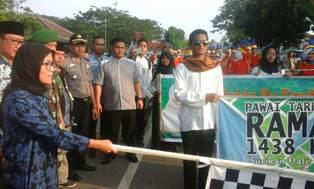 RANGKASBITUNG - Jelang bulan suci Ramadhan, Bupati Lebak Iti Octavia Jayabaya beserta jajarannya serta semua unsur Muspida lepas pawai tahrib dipelataran parkir barat alun-alun Kota Rangkasbitung, Jumat (25/5/2017).