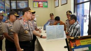 SERANG, (JT) - Dalam menjamin pelayanan pembuatan Surat Izin Mengemudi (SIM) bagi masyarakat Kapolda Banten Irjen Pol Agung Sabar Santoso, didampingi oleh Kapolres Serang AKBP Mariyono, meninjau langsung ke Sat Lantas Polres Serang, Senin (9/3/2020).