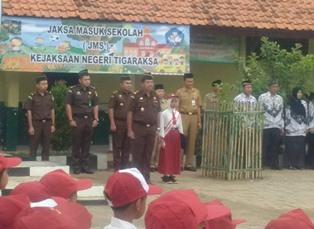 TIGARAKSA - Kejari Tigaraksa memimpin apel pagi di SDN Nagrak 1, Desa Margasari. Kecamatan Tigaraksa, Senin (22/2/2016). Apel pagi ini guna mewujudkan program nawa cita dan program Jaksa Masuk Sekolah (JMS) yang digagas Kejaksaan Agung.