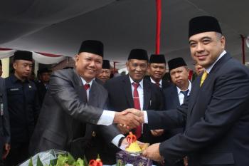 Bupati Tangerang A. Zaki Iskandar yang bertindak sebagai inspektur upacara menyampaikan sambutan menteri Agama Republik Idonesia Fachrul Razi.