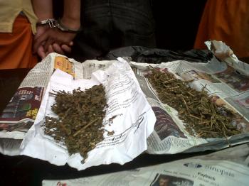 "Hasil penggeledahan kami menemukan barang bukti empat paket ganja," paparnya.