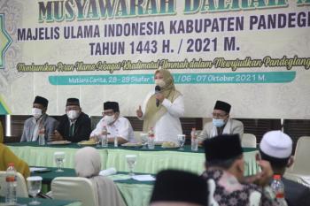 PANDEGLANG, (JD) - Musyawarah Daerah (Musda) X Majlis Ulama Indonesia (MUI) Kabupaten Pandeglang, digelar di Mutiara Carita, Rabu (6/10/2021). Dalam kesempatan ini Bupati Pandeglang Irna Narulita mengapresiasi MUI yang bekerja nyata untuk masyarakat.