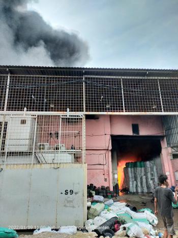KOSAMBI, (JT) - Pabrik ember plastik yang berlokasi di kawasan Pergudangan Pantai Indah Dadap Blok S9 Desa Dadap Kecamatan Kosambi, ludes dilalap sijago merah, Minggu (9/1/2021). Belum diketahui penyebab kebakaran ini, namun kerugian ditaksir mencapai ratusan juta rupiah.