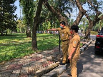 TIGARAKSA, (JT) - Sekretaris Daerah Kabupaten Tangerang Moch. Maesyal Rasyid meninjau lahan hijau dilingkungan pusat Pemerintahan Kabupaten Tangerang, Selasa (30/06/20). Lahan tersebut rencananya akan dibangun sebagai ruang publik yang multi fungsi.