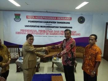 TIGARAKSA - Pemerintah Kabupaten (Pemkab) Tangerang lakukan kerjasama dengan Universitas Muhamadiyah Tangerang (UMT) dibidang pendidikan, Penelitian, dan Pengabdian Kepada Masyarakat di Kabupaten Tangerang, Selasa (11/10/2016).