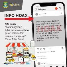 TANGERANG, (JT) - Pemerintah Kota Tangerang angkat bicara terkait maraknya infomasi tidak valid yang mengatakan bahwa Pasar Induk Tanah Tinggi akan ditutup mulai tanggal 23 hingga 26 Maret 2020 akibat dari penyebaran virus Covid-19.
