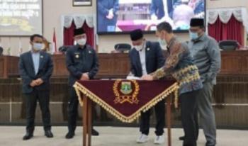 Di dalam rapat yang dipimpin oleh Wakil Ketua DPRD Banten Fahmi Hakim tersebut ditandatangani persetujuan DPRD terhadap perda inisiatif gubernur oleh Andika yang mewakili Gubernur Banten Wahidin Halim dan Fahmi Hakim yang mewakili DPRD Banten.