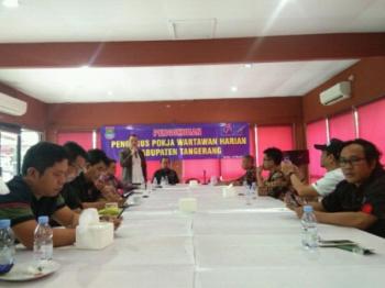 CIKUPA, (JT) - Kepengurusan Kelompok Kerja (Pokja) Wartawan Harian Kabupaten Tangerang periode 2020-2023 resmi dikukuhkan. Pengukuhan digelar di rumah Makan Saung Sunda Telaga Bestari, Kecamatan Cikupa, Kamis (12/3/2020).