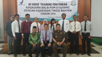 SERANG - Balai Pengawasan Obat dan Makanan BPOM serang bekerjasama dengan kejaksaan tinggi Banten menyelenggarakan in house training penyidikan di aula lantai 3 Gedung Balai POM, di Serang Jalan Syech Nawawi Al-Bantani, Kota Serang.