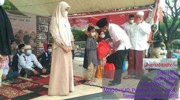 LEGOK, (JT) - Sekitar 100 lebih anak yatim piatu di Desa Caringin, Kecamatan Legok, Kabupaten Tangerang, Banten mendapat santunan, Jumat (20/8/2021). Santunan ini digelar Pemerintahan Desa (Pemdes) Caringin, guna memperingati lebaran anak yatim (Idul Yatama).