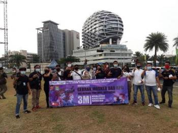 TANGERANG, (JT) - Puluhan wartawan yang tergabung dalam Kelompok Kerja (Pokja) Wartawan Harian Kabupaten Tangerang gelar gebrak masker, Jumat (25/9/2020). Selain membagikan 5000 masker, Pokja wartawan juga membagikan puluhan alat pelindung diri (APD) untuk tenaga medis dengan tema "jurnalis peduli covid-19".