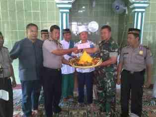 KRONJO - Sebagai ungkapan atas HUT TNI ke 70, Kapolsek Kronjo AKP Bambang Hermanto memberikan nasi tumpeng kepada Jajaran TNI yang diterima oleh Danramil Kronjo Kapten Invantri Kav Teguh, Minggu (4/10/2015) di Aula Kantor Koramil Kronjo.