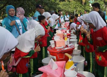 Pada hari yang sama 10 ribu murid melakukan hal yang sama di masing-masing sekolah dengan menggandeng LSM Bina Masyarakat Peduli (BMP) serta pihak swasta seperti Blue Band, Unilever dan lainnya.