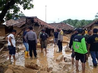 LEBAK, (JT)- Bencana Banjir dan longsor menyambut Awal tahun baru 2020 di beberapa Kecamatan, di Kabupaten Lebak. Dari data sementara yang diperoleh, Bencana Banjir dan longsor terjadi di Kecamatan Cipanas, Lebak Gedong dan Sajira. Atas kejadian tersebut, Kapolres Lebak Polda Banten AKBP Firman Andreanto beserta Pejabat Utama Polres Lebak dan Kapolsek Sajira bertindak cepat melakukan Cek Lokasi Wilayah sekaligus menyerahkan bantuan kepada korban yang terdampak Bencana Banjir Bandang di Sajira Timur Desa Sajira Mekar Kecamatan Sajira Kabupaten Lebak.