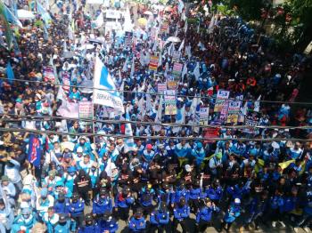 Ribuan Buruh Banten Konvoi ke Jakarta