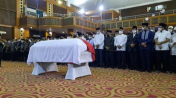 CIPUTAT, (JT) - Ribuan jemaah dan sejumlah tokoh publik ikut mensalatkan jenazah almarhum Profesor Azyumardi Azra, yang digelar di auditorium Harun Nasution, UIN Syarif Hidayatullah, Ciputat, Selasa (20/9/2022) pagi. Selanjutnya, jenazah dibawa mobil jenazah dan sejumlah rombongan keluarga dan pejabat negara ke Taman Makam Pahlawan Kalibata, untuk dimakamkan.