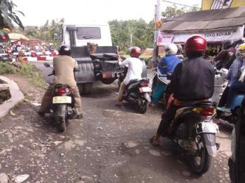 Kondisi jalan ketika hujan dan panas menjadi persoalan bagi masyarakat penggendara kendaraan.