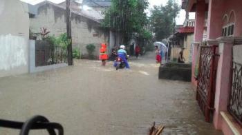 CURUG - Hujan deras mengguyur wilayah Kabupaten Tangerang, Sabtu (3/3/2018) sore. Imbasnya, sejumlah wilayah di Kabupaten Tangerang dilanda banjir.