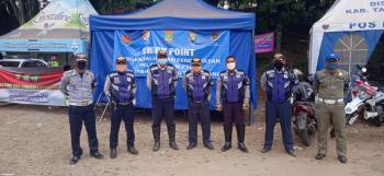 LEGOK, (JT) - Dinas Perhubungan Kabupaten Tangerang melakukan pengawasan Pembatasan Sosial Berskala Besar (PSBB) di jalan Raya Legok-Karawaci. Cek Point ini dilakukan tepatnya jembatan penghubung perbatasan Kabupaten Tangerang, Banten, dengan Kabupaten Bogor Jawa barat.