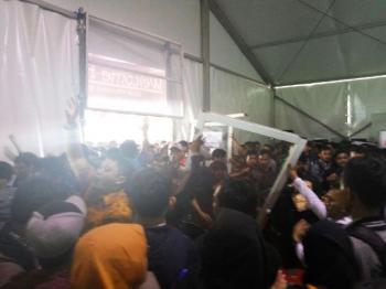 Ribuan pencari kerja yang datang namun diduga karena, kurangnya antisipasi dari panitia membuat ribuan pelamar berdesak-desakan dan mengakibatkan beberapa orang pelamar wanita, jatuh pingsan terinjak-injak. (DAY)